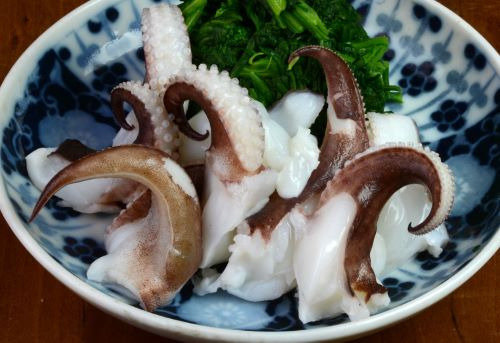 - 초밥 토핑: 얇게 저민 몸통을 살짝 토치해 향 부스팅, 소금 한 꼬집과 유자 제스트