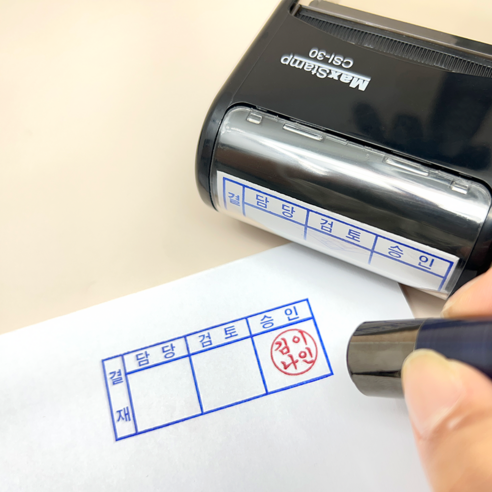 - 도장을 찍어 안건을 승인하므로 ‘결재’가 맞습니다.