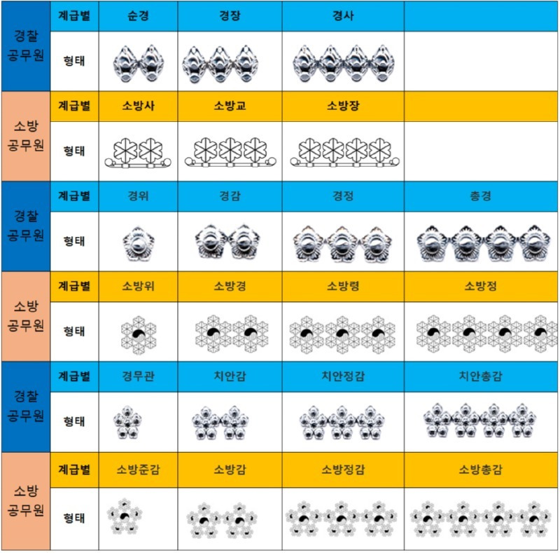 | 1급 | 실장급 | - | 치안총감 | 소방총감 | 대장 |