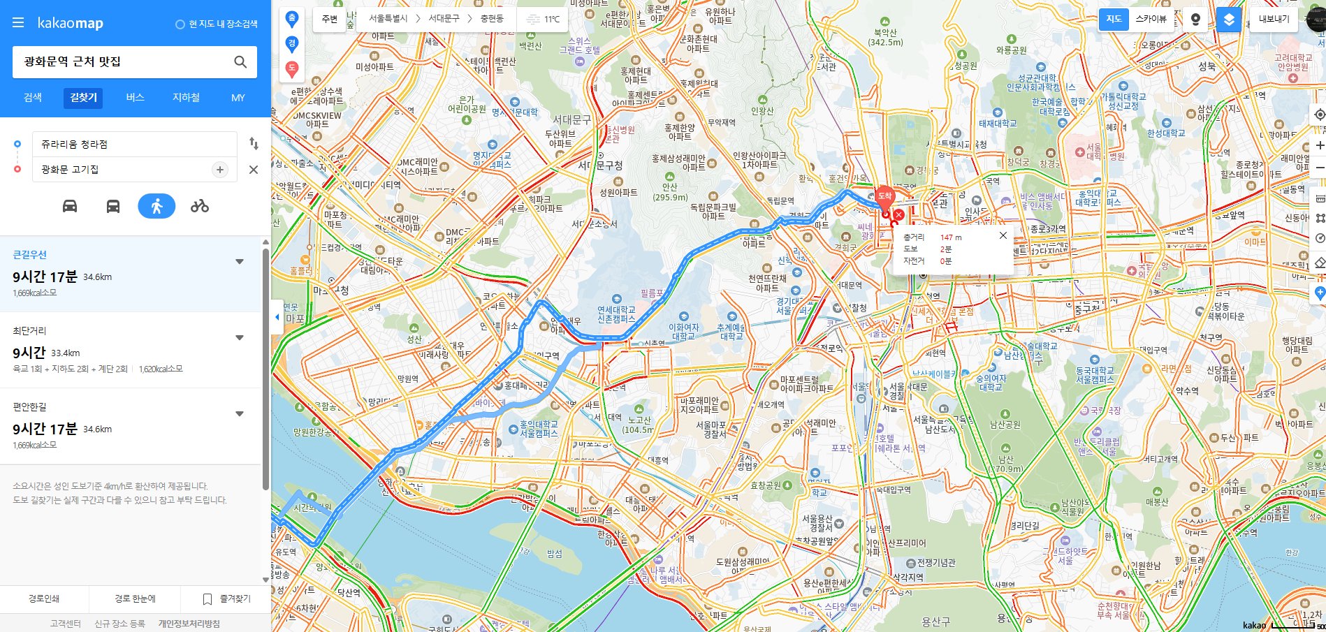 - 길찾기(자동차/대중교통/도보) 경로를 비교하려고