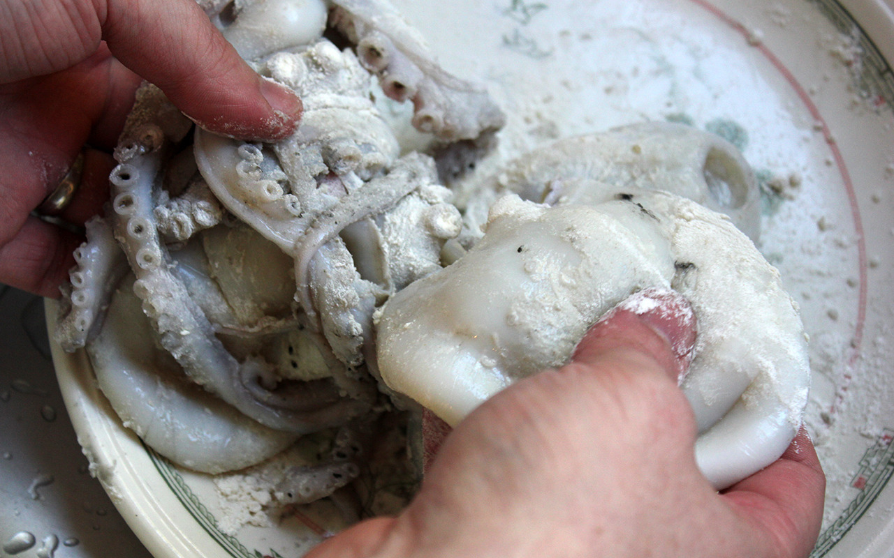 해동 후에는 가볍게 소금으로 한 번 더 문질러 세척하면 좋습니다. 냉동 과정에서 점액질이 일부 제거되었지만 잔여물이 남아 있을 수 있기 때문입니다.
