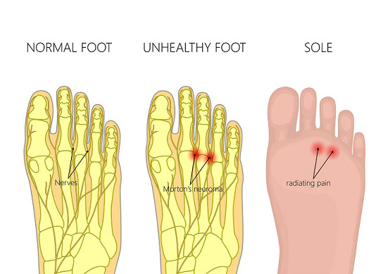 발가락 사이의 신경이 두꺼워지며 통증을 유발하는 질환으로, 주로 셋째와 넷째 발가락 사이에 발생합니다. 걷거나 신발을 신을 때 찌릿하거나 전기가 흐르는 듯한 통증이 느껴집니다. 하이힐이나 꽉 끼는 신발이 주요 원인입니다.