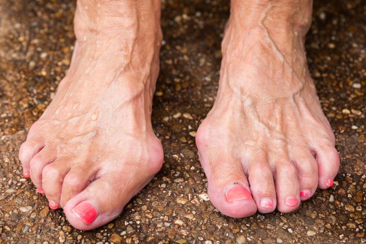 엄지발가락이 바깥쪽으로 휘어지며 발의 균형이 무너져 발바닥에 과도한 압력이 가해지는 질환입니다. 하이힐이나 좁은 신발을 오래 신는 여성에게 흔합니다. 발바닥 앞쪽 통증과 함께 변형이 육안으로 보이는 것이 특징입니다.