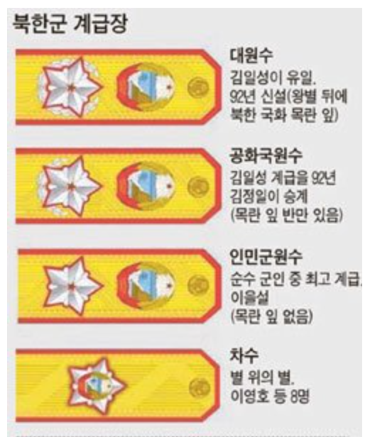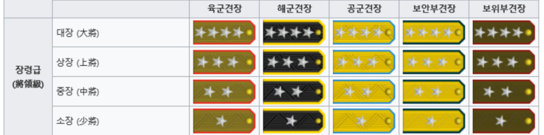 조선인민군 북한군 계급체계 구조 한눈에 보기