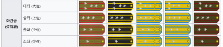 - 좌관급: 대좌·상좌·중좌·소좌
