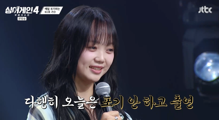 61호 가수는 “매일 포기하는 가수”라는 수식어가 붙을 만큼 자신을 좌절하기 쉬운 유형으로 규정해 왔다는 발언으로 화제가 되었습니다.