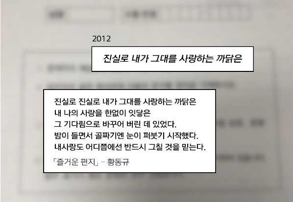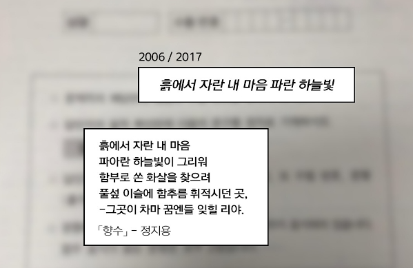 수능 시험지를 받아들 때 맨 처음 마주하는 문장은 ‘필적확인문구’입니다. 단순한 문구 같지만, 수험생에게는 시험의 긴장을 잠시 누그러뜨리는 ‘한 줄의 시’가 되기도 합니다. 2006학년도부터 지금까지의 수능 필적확인문구는 한국 대표 시인들의 시 구절에서 발췌되어, 매년 새로운 의미로 학생들에게 전해져 왔습니다.