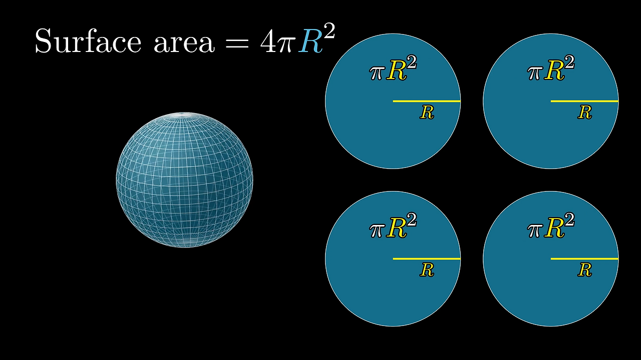 - 따라서 직사각형의 면적은 $\pi r \times r = \pi r^2$.