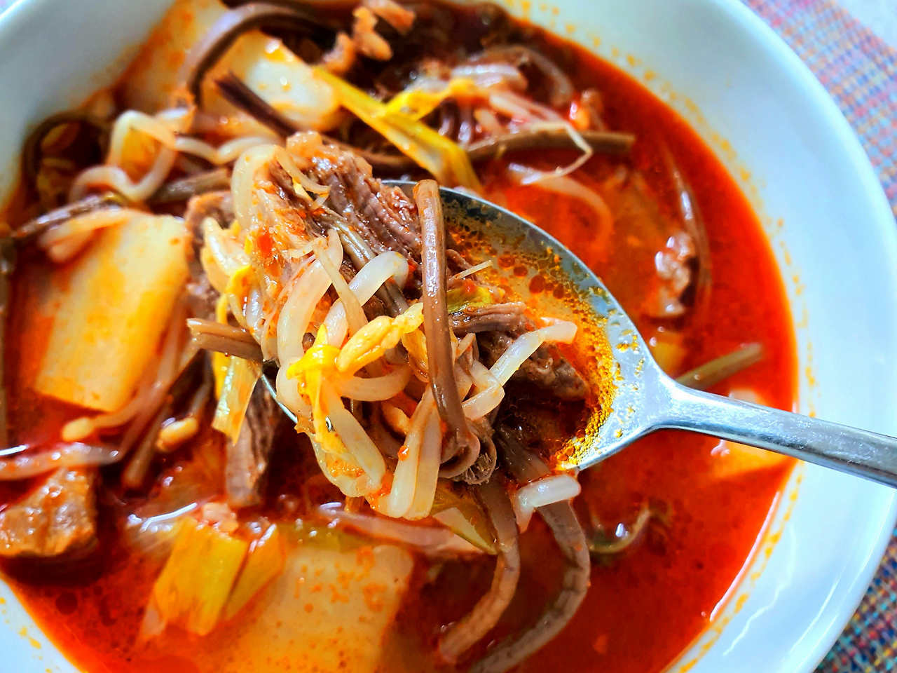 육개장은 ‘매콤한 국물’만 잘 내면 끝이라고 생각하기 쉬운데, 실제로는 향-감칠맛-식감이 동시에 맞아야 맛이 완성됩니다. 특히 집에서 끓일 때 실패가 잦은 구간이 딱 3곳입니다. 첫째, 고기 육수를 급하게 내서 국물 베이스가 얇아지는 경우, 둘째, 고추기름과 양념을 한 번에 때려 넣어 텁텁하거나 쓴맛이 올라오는 경우, 셋째, 파·고사리·숙주 같은 건더기의 익힘 타이밍이 어긋나 흐물흐물하거나 비린내가 남는 경우입니다.