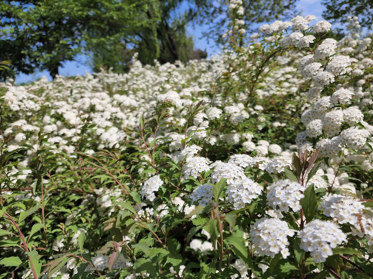조팝나무는 정원수나 조경용으로 많이 활용되며, 특히 울타리나 화단 경계 식재에 적합합니다. 낮은 높이와 풍성한 가지 덕분에 공간을 채우는 데 효과적입니다.