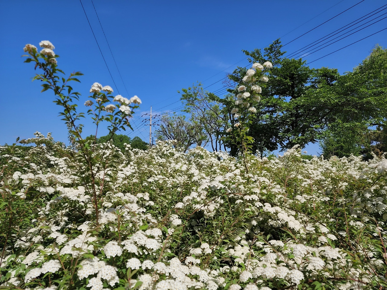 - 식재 위치: 이팝나무는 도로변, 조팝나무는 화단
