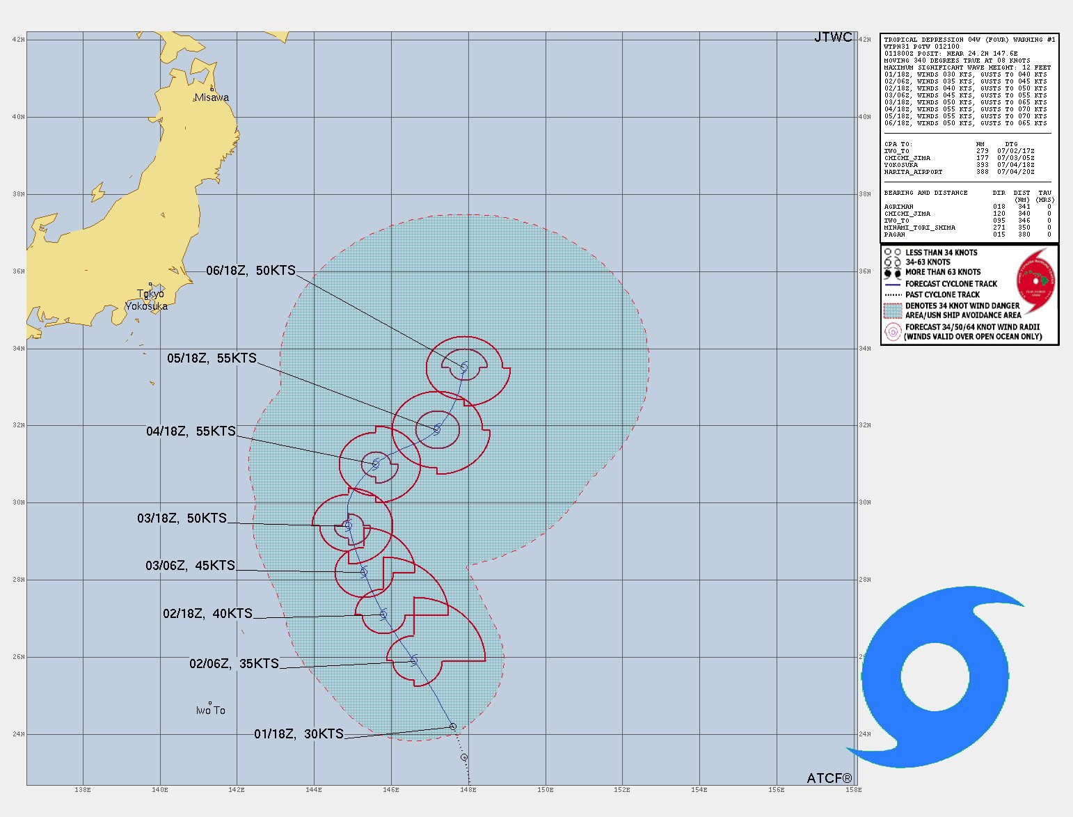 | 7월 5일 03:00 | 남동쪽 730 km | 992 hPa | 24 m/s | NW→WNW |