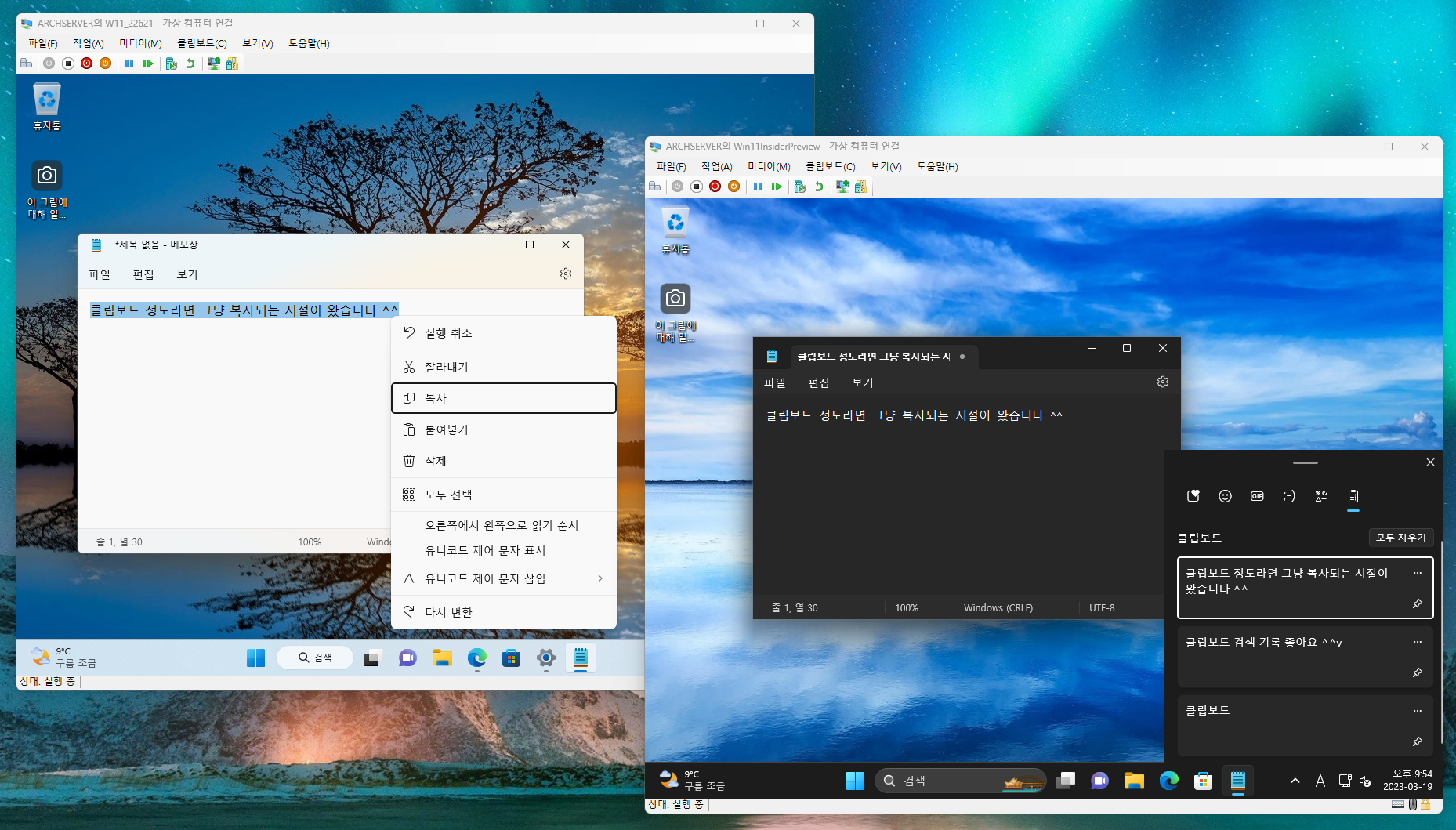 윈도우 10 이상에서는 확장 기능으로 클립보드 기록 불러오기가 가능합니다.