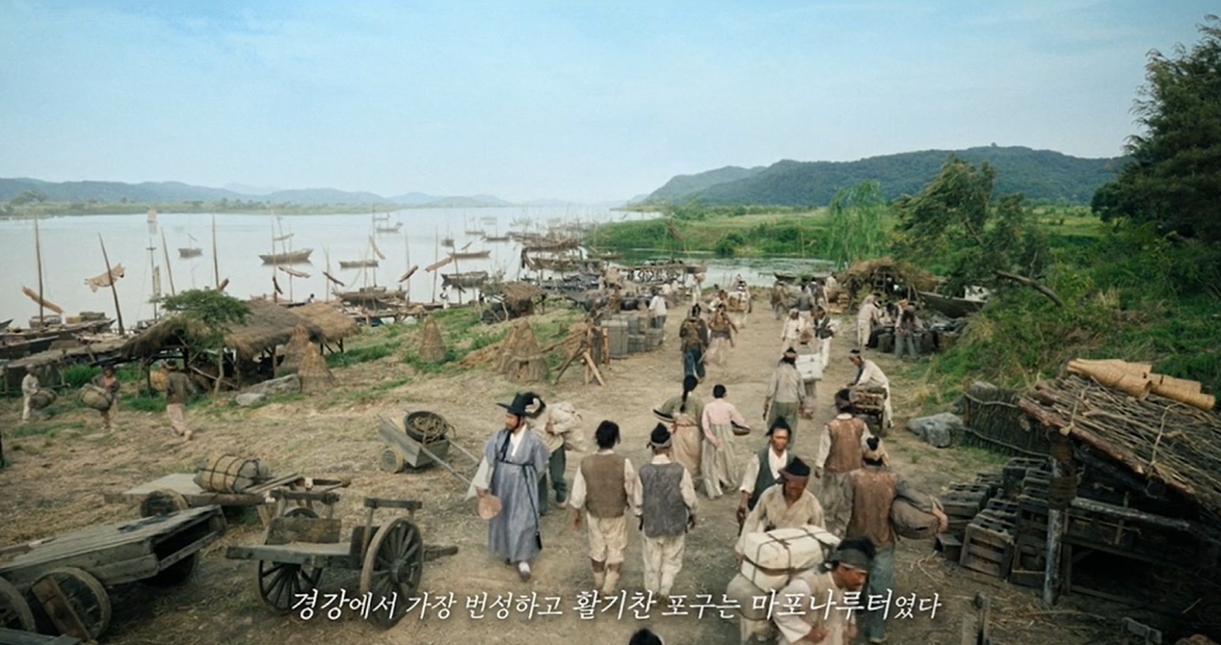 드라마에서 가장 인상적인 장면 중 하나는 바로 마포 나루터의 해상 장면입니다.