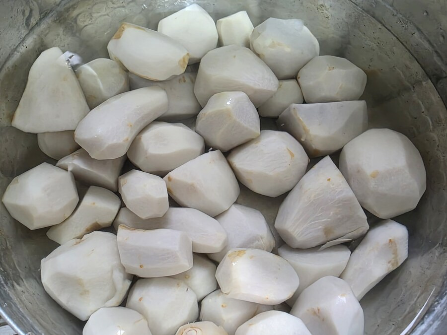 3. 토란 크기: 너무 크면 속이 덜 익고 작으면 으깨지기 쉬우므로 중간 크기가 가장 좋습니다.