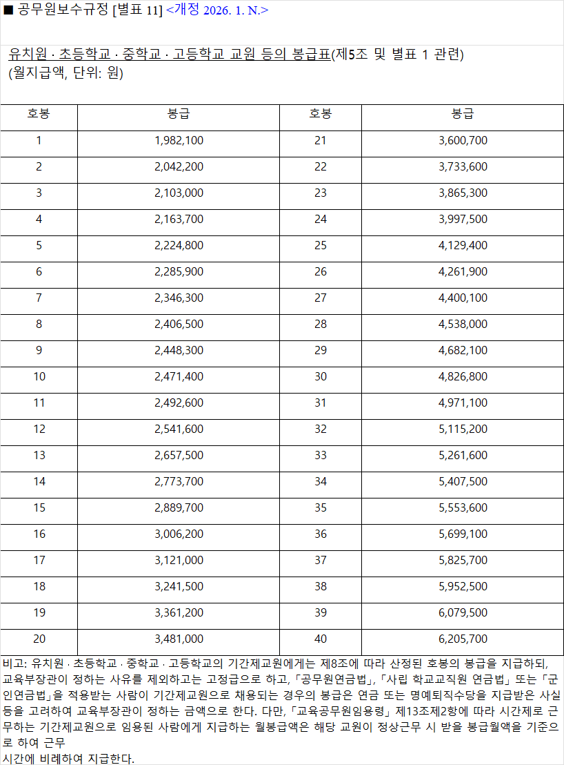 2026년 공무원봉급표 | 2026 공무원보수 인상